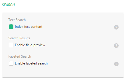“Index text content” – indicates whether a field’s value will be a part of the full-text search. Applicable only for the string/XhtmlDocument fields.