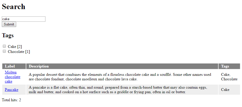 Here’s an example of search in a custom data type, including faceted search and search results sorting: