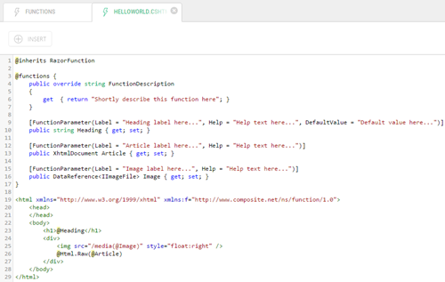 Note. For information about using Visual Studio to create or edit Razor functions, please see "Creating Razor Functions in Visual Studio".