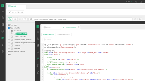 To use the "shared-code" Master Page as a master layout, follow the standard procedure of using ASP.NET Master Pages: