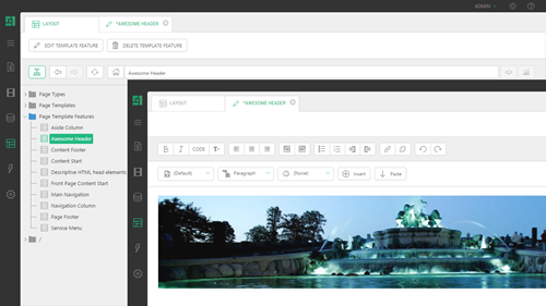 The first option automates some of the editing operations, giving you a mimimal boilerplate markup in the created feature and a smooth integration with other features of the CMS Console, such as inserting links to CMS Pages and images from the media archive or inserting CMS Functions. Creating and editing a template feature in your favorite external markup editor brings in a familiar editing experience as well as the features specific to your editor but requires more manual editing.